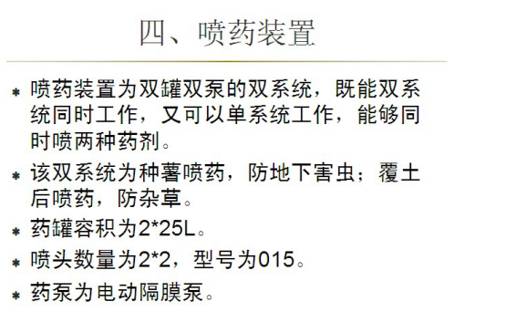 ① 该马铃薯种植机适用于土壤含水率20%以下,且耕整后较平整、无石块、障碍物的地块种植作业。