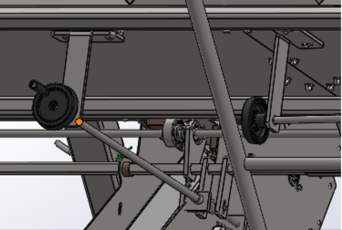 4. 播种单元振动板的宽窄通过上面这个旋转把手来调节。旋转把手带着链轮,链轮通过链条带动下面的链轮,下面的链轮通过与螺纹块的距离的改变,来调节播种单元的播种大小,宽窄。